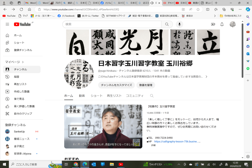 YouTubeチャンネル「玉川習字教室」を開設しています